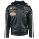 The FIFTY EIGHT retro men’s motorcycle jacket is made for the tough motorcyclist. FIFTY EIGHT is equipped with removable CE-certified protective pieces. Made of high-quality lamb leather. Detachable fleece hood. With 2 inner pockets, 1 with zipper, 4 outer pockets all with zippers. Beautifully finished detachable bodywarmer. Very complete motorcycle...