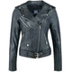 Alice Beautiful jacket for a tough motorcycle look. Made of high-quality, soft lambskin. Beautifully finished and striking Silver YKK zippers and buttons. 2 inside pockets, 1 with zipper. This jacket fits Small. Please note: does not contain protective pieces. Supple leather jacket.