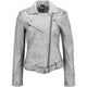 Alice Beautiful jacket for a tough motorcycle look. Made of high-quality, soft lambskin. Beautifully finished and striking Silver YKK zippers and buttons. 2 inside pockets, 1 with zipper. This jacket fits Small. Please note: does not contain protective pieces. Supple leather jacket.