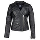 Alice Beautiful jacket for a tough motorcycle look. Made of high-quality, soft lambskin. Beautifully finished and striking Silver YKK zippers and buttons. 2 inside pockets, 1 with zipper. This jacket fits Small. Please note: does not contain protective pieces. Supple leather jacket.